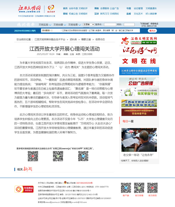 为丰富大学生校园文化生活,培养团队合作精神,促进大学生身心发展,近日,437必赢会员中心在西湖校区举办了以“‘心’动力 勇闯关”为主题的心理闯关活动。