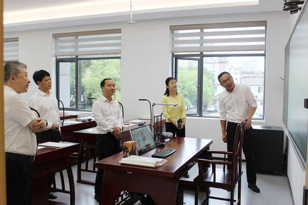 在萍乡开放大学,周天明一行在省校黄平槐校长的陪同下实地考察了学校机房、机考教室、智慧教室、一站式综合服务中心、普通话测试站及龚全珍师德教育馆,全面了解学校基础设施建设、数字化教学环境及服务保障体系。座谈会上,萍乡开放大学党委书记周积纯、校长肖洁围绕学校充分发挥网络化、数字化办学优势,探索形成三轮驱动 同心育人人才培养模式,以及打造学历教育、教师培训、社会培训、社区教育四张名片等方面进行了详细汇报。