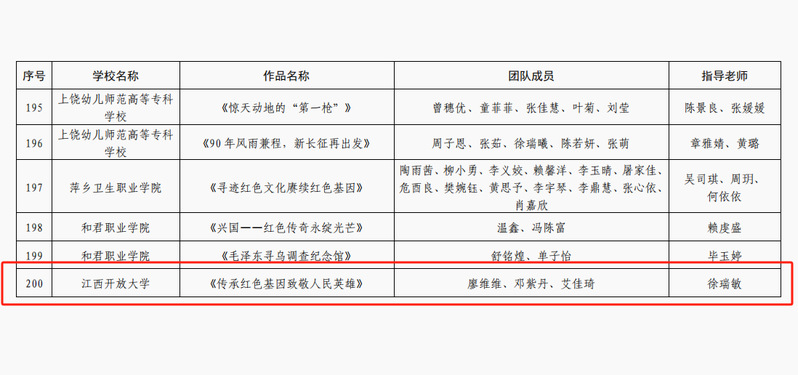 近日,江西省教育厅公布了2024 年度全省 “红色走读” 系列活动的获奖名单,必赢官网选送的作品《传承红色基因 致敬人民英雄》被评为“红色云游”优秀作品。