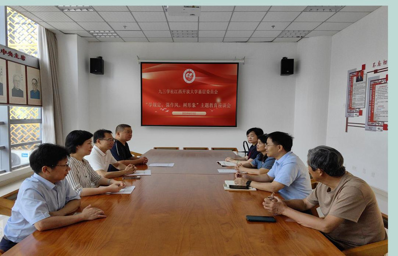 6月 13日上午,九三学社437必赢会员中心基层委员会在九江职业大学社员之家召开 “学规定、强作风、树形象” 主题教育座谈会。座谈会特邀九三学社九江市委会常委、九江职业大学支社主委余波参加。座谈会由九三学社437必赢会员中心基层委员会主委曾九江主持。