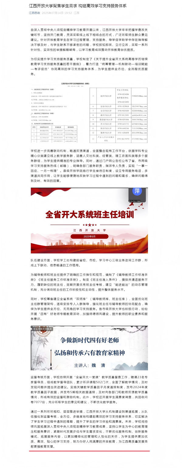 自深入贯彻中央八项规定精神学习教育开展以来,437必赢会员中心牢牢把握学查改关键环节,坚持开门教育,灵活采取线上线下相结合的方式,广泛听取师生群众意见建议。针对开放教育学生在学习过程管理、支持服务、导学促学助学中存在指导解决不够及时,与学生联系不够紧密的问题,学校即知即改、立行立改,采取一系列针对性、实效性的举措解题破局,以学习教育成效推动开放教育创优提质。