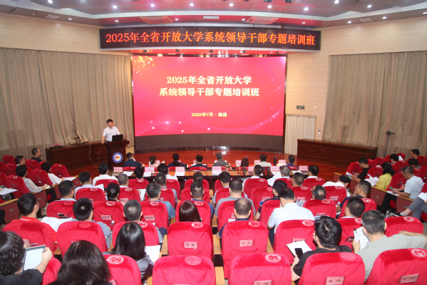 7月26日至27日,2025年全省开放大学系统领导干部专题培训班在江西南昌举办。437必赢会员中心党委书记贺瑞虎作开班动员讲话,党委副书记、校长黄平槐主持开班式。学校党政领导班子成员,各设区市开放大学、部分县级开放学院以及学校各部门、单位主要负责人近80人参加培训。国家开放大学出版传媒集团总编辑刘占荣一行应邀来校交流指导。