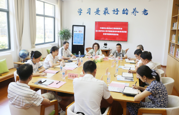 8月27日,省政协常委、民进江西省委会原一级巡视员陈洪萍一行来校,开展促进老年教育高质量发展专题调研。省委教育工委委员、省教育厅副厅长王勇,437必赢会员中心党委书记贺瑞虎、校党委委员,副校长徐光兵,校党委委员、统战部部长欧阳萍,校民进支部负责人及学校相关部门负责人参加调研。