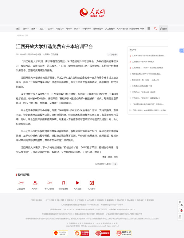 近日,人民网报道必赢官网创新打造专升本培训平台工作举措。原文地址:http://jx.people.com.cn/n2/2025/0917/c186330-41354587.html (审校:罗楚颖 徐星星 张明)