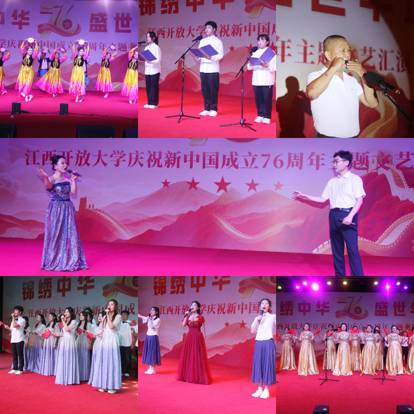金秋山河美,盛世凯歌扬。在中华人民共和国成立76周年之际,为铸牢中华民族共同体意识,厚植家国情怀与增强文化认同,9月27日晚,学校在西湖校区举行“锦绣中华·盛世华章”主题文艺汇演。校党委副书记邓文君、副校长徐光兵以及相关部门负责人与师生代表400余人共同观看演出,共庆华诞、共抒情怀。