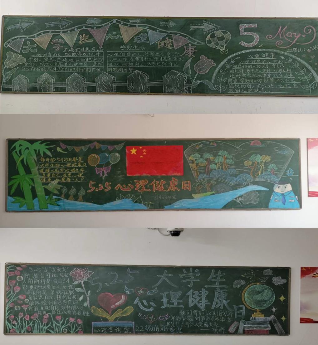 为了进一步提高大学生的心理素质,培养良好的适应能力,宣传普及心理健康知识,5月25日,我院举办了以“5·25大学生心理健康日”为主题的黑板报评比活动。