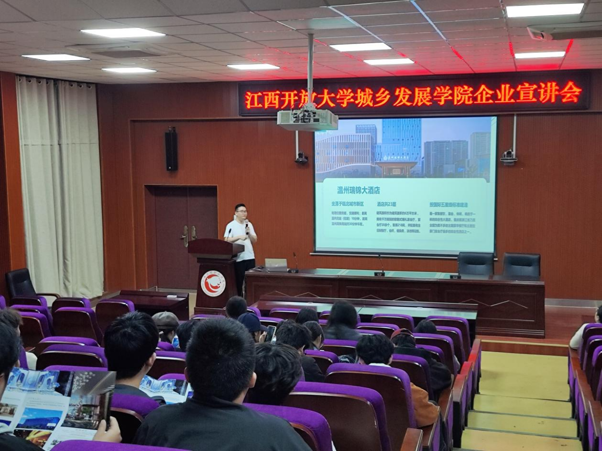 10月31日晚,江西工程职业学院西湖校区迎来温州滨海酒店集团的宣讲会。此次活动由437必赢会员中心城乡发展学院主办,吸引了众多对酒店业感兴趣的学生前来参加。