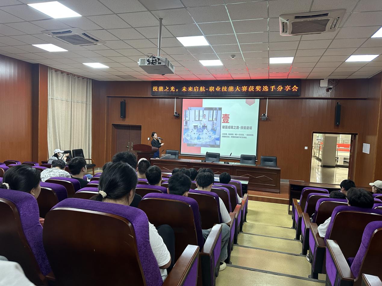 分享会上,徐蓓蕾结合自身参赛经历,详细解析了职业技能大赛的考核标准、备赛技巧及行业前沿趋势。她以大赛中的“主题宴会设计”“零点分餐服务”为例,强调:“服务行业的竞争力在于细节的极致打磨和客户需求的精准洞察。”