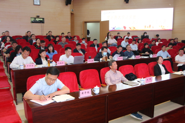 5月8日上午,学校学习贯彻习近平新时代中国特色社会主义思想主题教育读书班在东湖校区学术报告厅开班。省委第九巡回指导组组长王晖出席开班式。校党委书记贺瑞虎作专题党课报告。他强调,全校上下要深入学习领会习近平新时代中国特色社会主义思想,坚决贯彻落实党中央决策部署和省委工作要求,牢牢把握主题教育总要求和根本任务,在学思践悟中感悟思想伟力,汇聚起奋进新征程、建功新时代的强大力量,为谱写中国式现代化的江西篇章作出新的更大贡献。