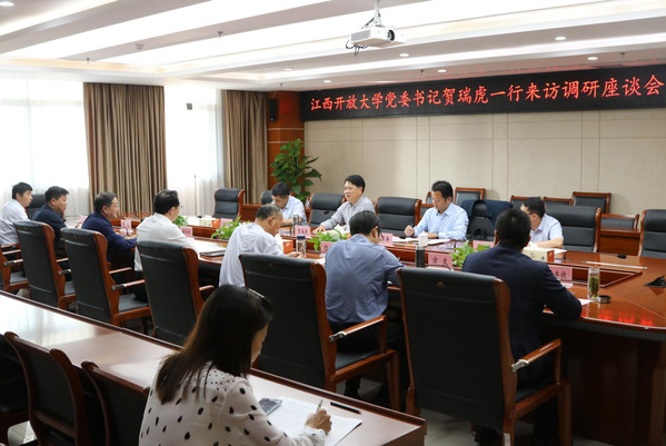 安徽开放大学对贺瑞虎一行来皖考察调研给予热情接待。安徽开放大学党委书记、校长郑汉华主持召开了座谈会,并介绍了安徽开放大学办学总体情况,系统阐述了安徽开放大学实施综合改革、抢抓转型发展机遇、建设高等继续教育园区的思路和实践。安徽开放大学副校长诸咸斌详细介绍了学校创新开展老年教育、社区教育的工作模式,与省总工会合作开办工匠学院、与省民政厅合作开办民政开放学院的实现路径,重点介绍了学分银行助推区域三教融合协同创新、服务区域学习型社会建设的实践做法。