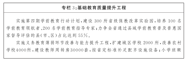 ——保障支撑更加有力。党对教育事业的全面领导进一步加强。教育经费投入进一步加大,财政教育投入稳定增长长效机制进一步健全。师德高尚、业务精湛的高素质教师队伍数量更加充足、结构更加合理。优质数字教育资源更加丰富,信息化技术融合应用更加深入。