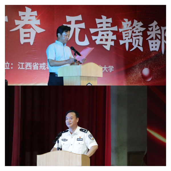 在启动仪式环节,罗军涛致辞,他表示加强禁毒宣传教育,保护青年健康成长,功在当下、利在千秋。江西省戒毒局党委委员、政治部主任常民在讲话中指出戒毒工作,事关国家安危,希望同学们牢固树立“珍爱生命、远离毒品”的理念。随后,戒毒管理局领导转交服务团团旗,江西‘映山红’戒毒服务团宣告正式成立。