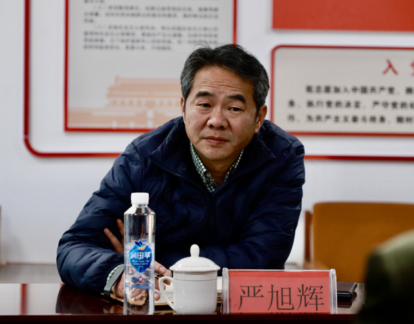 座谈会上,严旭辉听取了学校办学业务工作、校园建设等方面的情况汇报,并就相关情况进行了细致询问和详细了解。