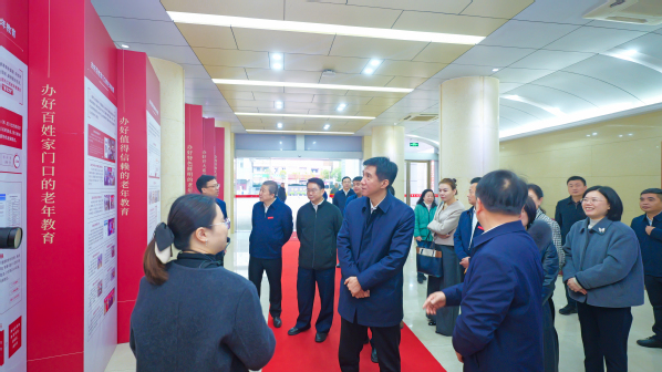调研期间,王启明一行参观了学校老年教育成果展,并实地查看老年教育“智慧教室”办学条件和教学设施,与学校老年教育学员们亲切交流。(供稿:宣传部 编辑:罗楚颖 责编:张明)