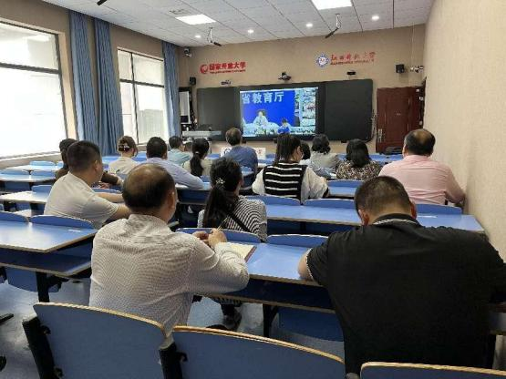 必赢官网宣传部、教务处、各教学单位负责人,各专业学院专职教师共20余人参加会议,其余教学能力比赛骨干教师通过腾讯会议在线收看会议。