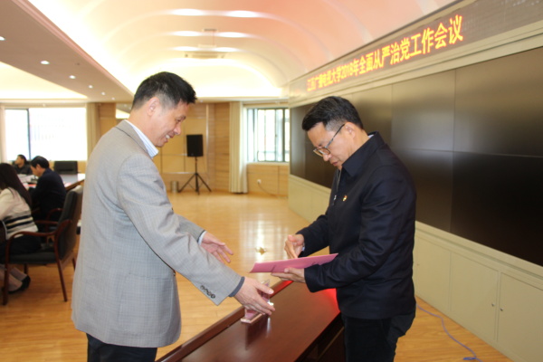 易小明强调,学校各级领导干部一要切实提高站位,全面认识全面从严治党新形势。全面从严治党是统揽“四个伟大”的根本保证,我们要深刻认识到全面从严治党对全党、对学校发展的极端重要性,要在思想上重视起来,在行动上落实起来,推动学校全面从严治党工作向纵深发展。二要切实找准目标,牢牢把握全面从严治党新方向。要把党的政治建设放在首位,要持之以恒地深化作风建设,要全面促进“两个责任”的发挥。三要切实履责担当,努力展现全面从严治党新作为。务必强化担当,各级领导干部要带头改进作风,增强本领,提高境界,形成“头雁效应”。务必严肃纪律,把纪律和规矩挺在前面,坚持“真管真严、敢管敢严、长管长严”。务必突出实效,秉承问题导向原则,出新招、出硬招、出实招,将各项工作落到实处,推动学校风清气正的政治生态持续好转,为建设特色鲜明的高水平新型大学提供坚强保障。