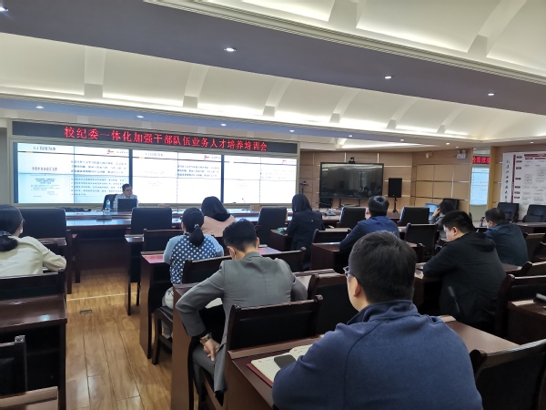 为扎实贯彻落实省纪委《关于一体化加强全省纪检监察干部队伍业务人才培养的意见》部署要求,进一步提高纪检干部公文写作水平,有效提升公文写作质量。10月8日上午,学校纪委邀请了机关党委书记、办公室副主任汪红亮为全体纪检干部进行了公文写作能力提升专题培训。