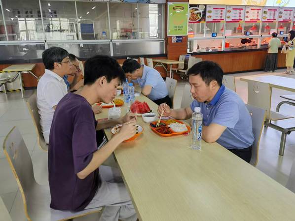 在学生食堂,汤长明听取校园管理处和食堂委托经营企业相关介绍,与就餐学生交谈,听取改进食堂服务的意见和建议。他强调,“校园餐”关系师生饮食安全和身体健康,是当前学校全面从严治党、党风廉政建设的重点领域和薄弱环节,有关职能部门要以“时时放心不下”的责任感,坚持问题导向,严格落实食品安全主体责任,紧盯食材采购、加工制作、配送分发等重点环节,持续强化日常监督检查,不断提高获得感、安全感。