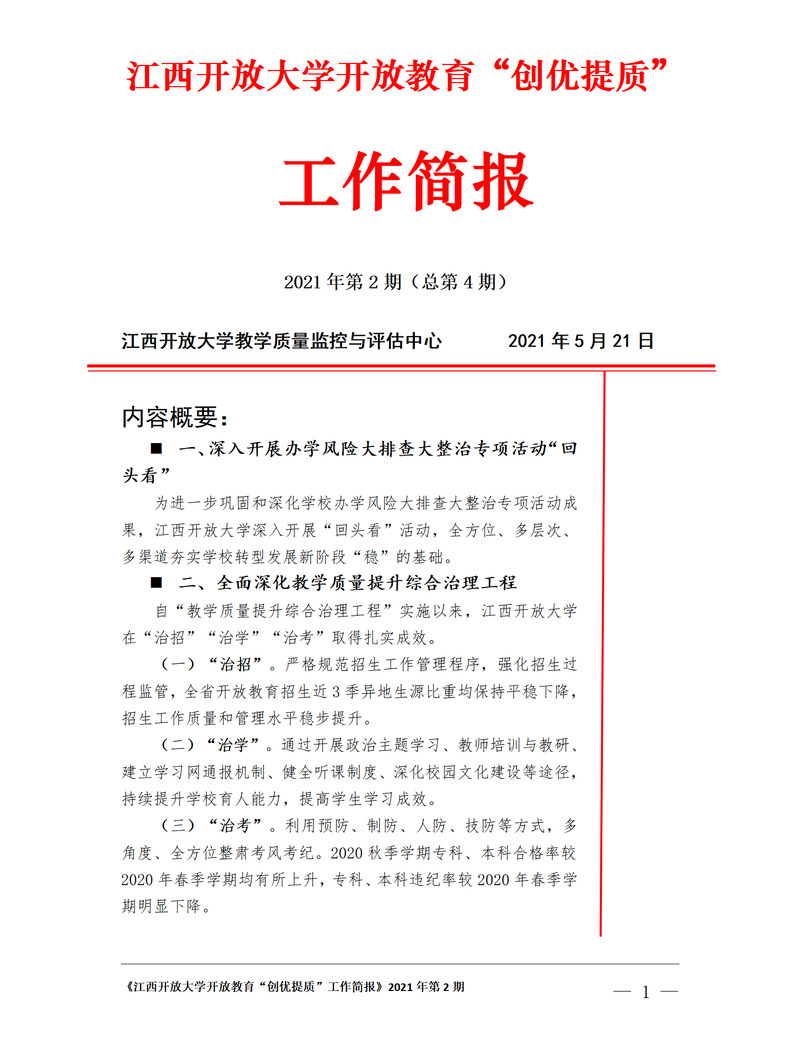 437必赢会员中心开放教育“创优提质”工作简报 2021年第2期(总第4期)