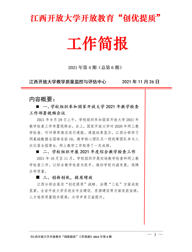 437必赢会员中心开放教育“创优提质”工作简报 2021年第4期(总第6期)