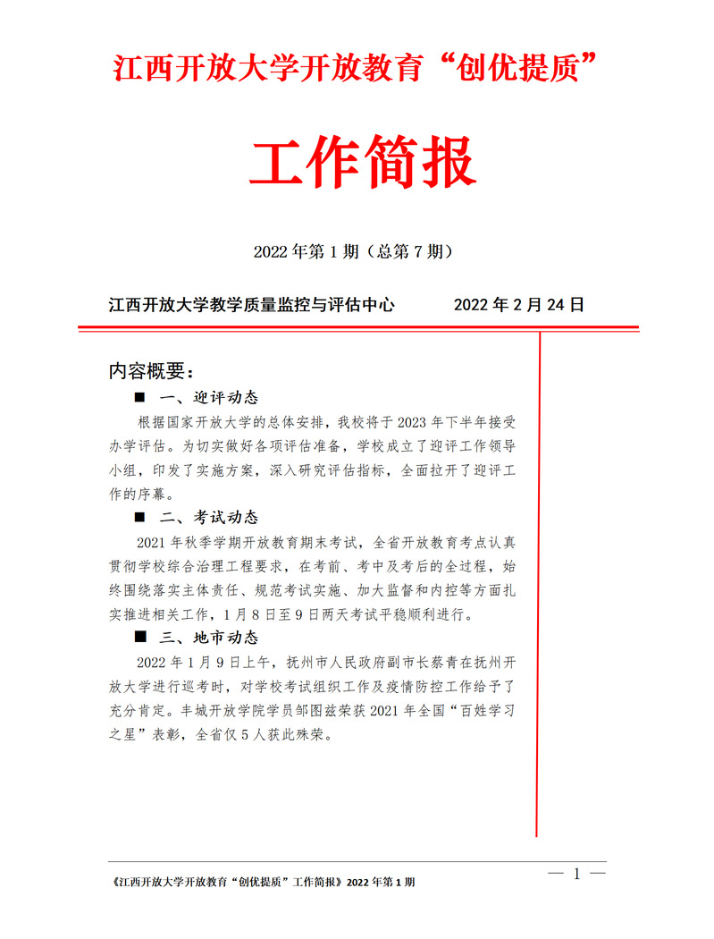 437必赢会员中心开放教育“创优提质”工作简报 2022年第1期(总第7期)