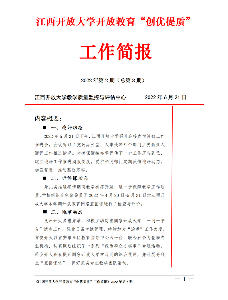 437必赢会员中心开放教育“创优提质”工作简报 2022年第2期(总第8期)