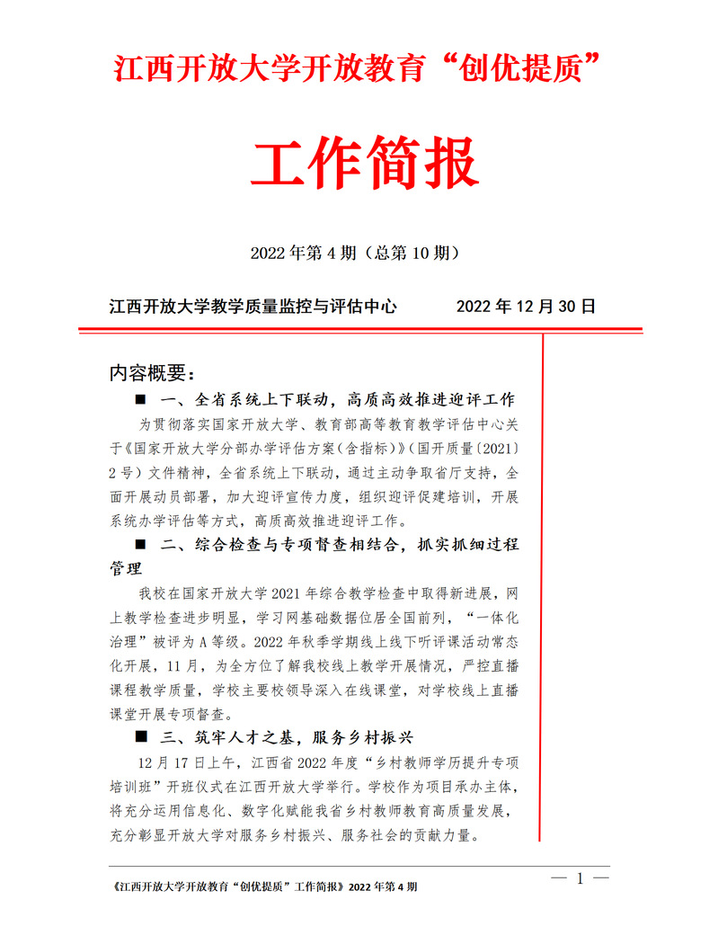 437必赢会员中心开放教育“创优提质”工作简报2022年第4期(总第10期)