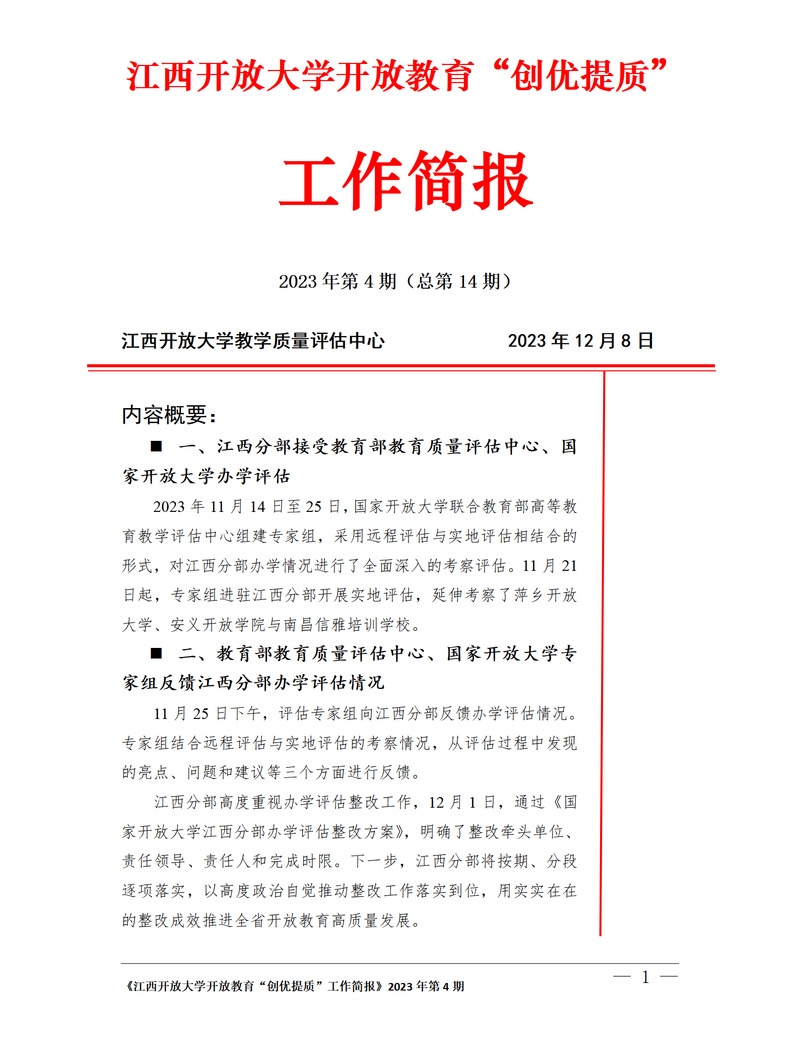 437必赢会员中心开放教育“创优提质”工作简报2023年第4期(总第14期)