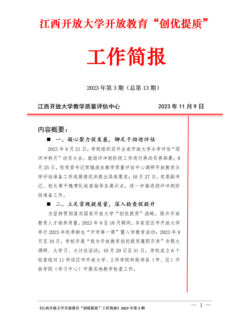 437必赢会员中心开放教育“创优提质”工作简报2023年第3期(总第13期)