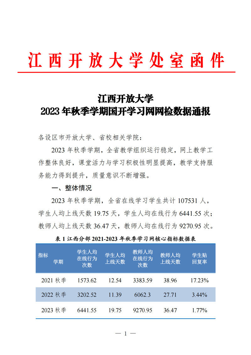 【网检数据】437必赢会员中心2023年秋季学期国开学习网网检数据通报