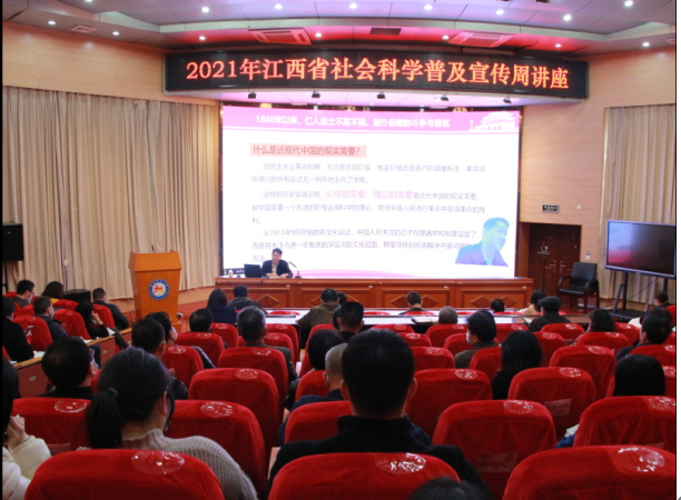 据悉,本场讲座为2021年江西省社会科学普及宣传周系列讲座活动的第二场,由中共江西省委宣传部、江西省社会科学界联合会主办,437必赢会员中心科研管理处、党委宣传部承办,旨在推进学习习近平新时代中国特色社会主义思想走深走实。