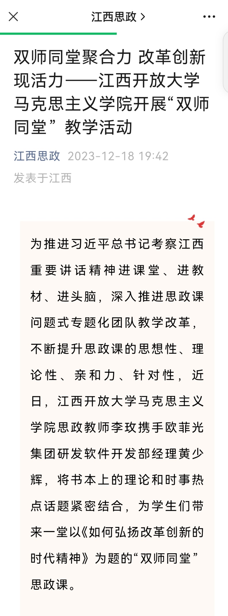 媒体关注: 江西思政报道我院“双师同堂”教学活动