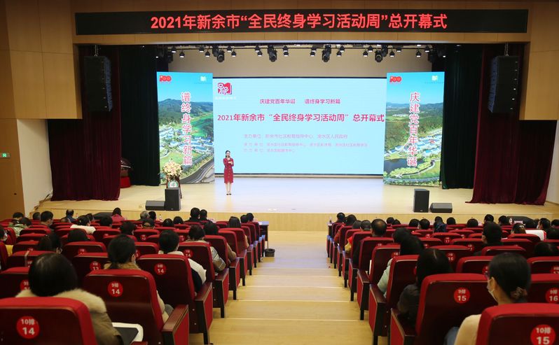 开幕式以“庆建党百年华诞,谱终身学习新篇”为主题,展示了“新余市全民终身学习成果”,播放了“学习,让生命更精彩”的专题宣传片,举行了新余市社区教育成果展演,表彰了全国、全省、全市的11个“百姓学习之星”、10个“终身学习品牌项目”。