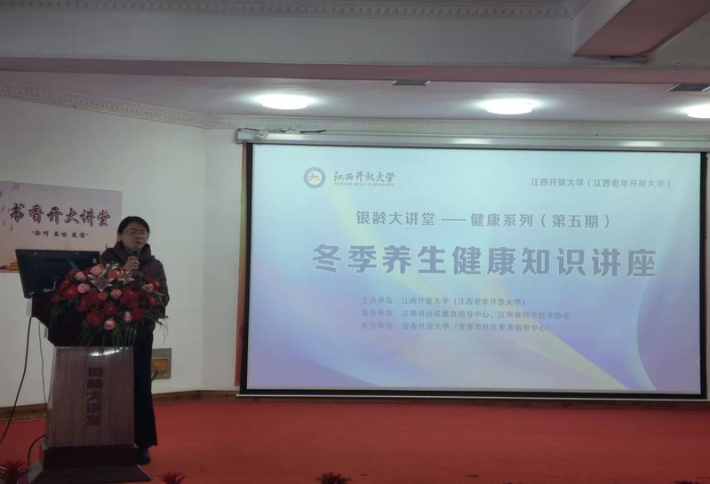 为贯彻落实习近平总书记对加强新时代老龄工作的重要指示和国家卫生健康委等15部门联合印发的《“十四五”健康老龄化规划》精神,提高中老年人的主动健康能力,促进实现健康老龄化,2024年1月3日下午,由437必赢会员中心(江西老年开放大学)主办,宜春开放大学承办的“银龄大讲堂”第五期健康系列——冬季养生健康知识讲座在宜春开放大学校本部成功举办。讲座通过线上线下的形式同步开展,全省各地市开放大学(社区教育指导中心)组织分会场集中收看,200余人现场参加了活动,线上直播观看量达1.5万人次。