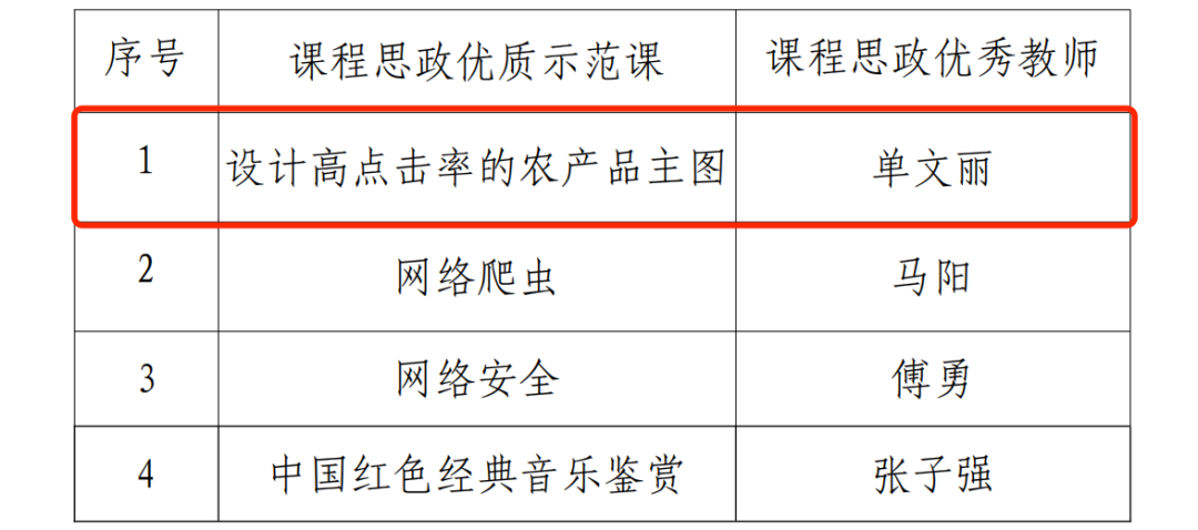 近日,437必赢会员中心组织开展了“2022年度课程思政优质示范课”评选活动,经过各学院(学部)择优推荐、教务处组织专家评审,共评选出2022年度校级“课程思政优质示范课”4项。我院单文丽老师报送的课例“设计高点击率的农产品主图”入选“课程思政优质示范课”,教师本人被授予“课程思政优秀教师”称号。