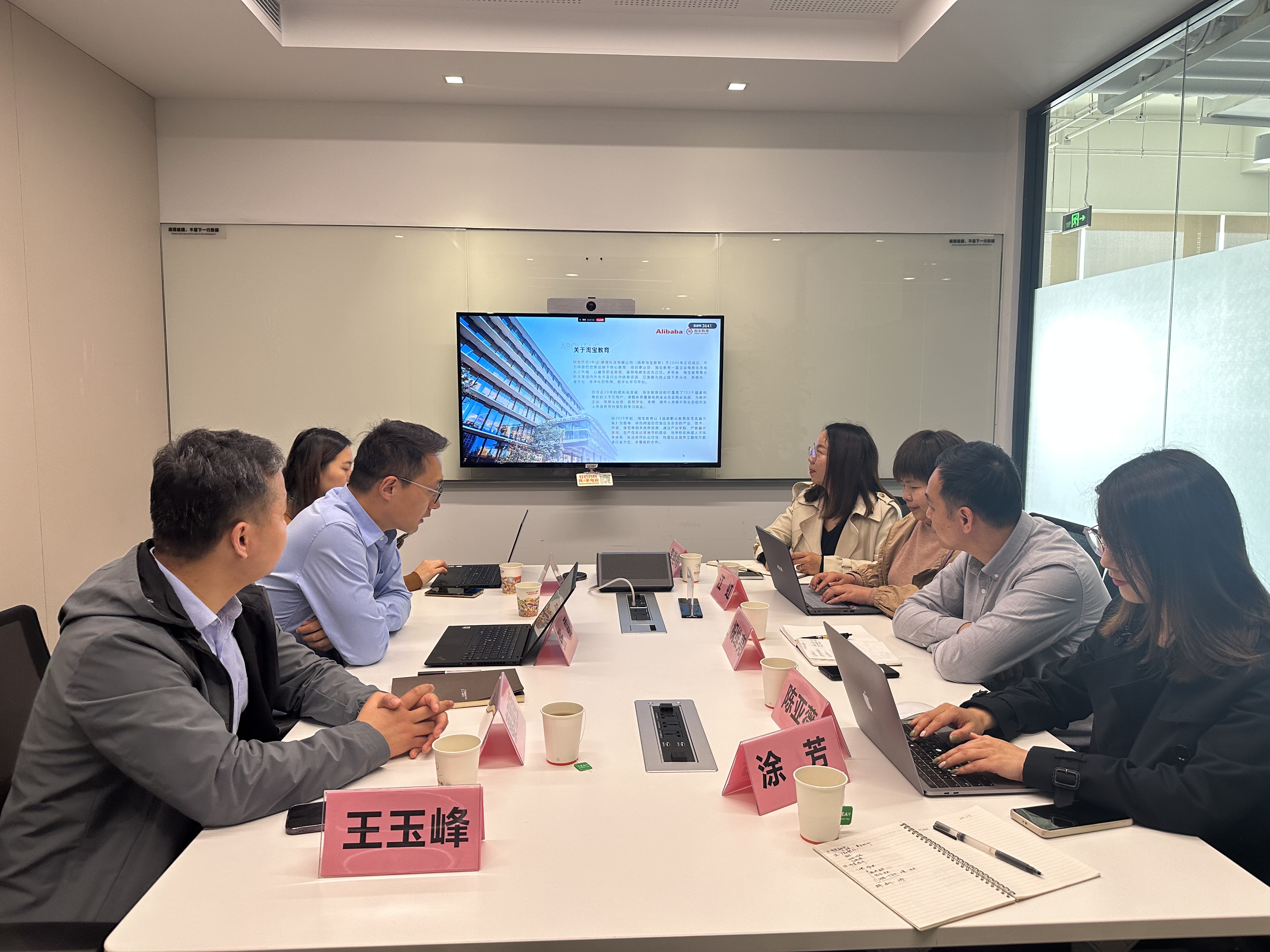 在阿里巴巴调研期间,阿里集团淘宝教育院校业务及国际业务总监张雷详细介绍了阿里巴巴集团的企业宗旨、文化精神、集团业务和未来的生态布局,并就淘宝教育相关业务及版块进行了详细介绍。随后双方围绕产学研合作交换了意见建议,并就下一步在产业学院、课程资源、实训体系、技能认证、实习就业、师资培训、社会服务等领域加强合作交流达成共识。