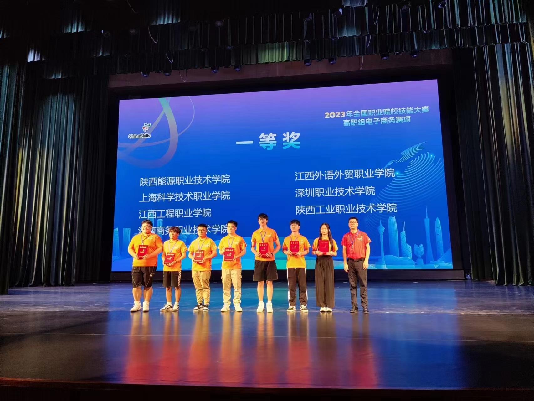 7月24-26日,2023年全国职业院校技能大赛(高职组)电子商务赛项在广东科学技术职业学院举办,必赢官网电子商务专业团队代表江西省参赛,经过2天的激烈角逐,由数字经济学院教师万文静、吴梦颀、21电商1班李思瑶、21电商2班朱海玲、21电商3班郑光楠、21市场营销班林杨琦组成的代表队以全国第三名的总成绩,获得国家一等奖!刷新了必赢官网在该项赛项上的最好成绩,实现了国赛金奖零的突破!