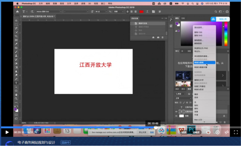 在课程思政实施方面,课程网络教学实施团队积极引入实际案例教学,激发学生学习兴趣。将校园文化、江西地域文化融入直播教学内容,培养爱校园、爱家乡的情怀。如《电子商务网站规划与设计》网络教学实施团队在讲解“网页图片设计”时,以437必赢会员中心校徽设计为例,向学生讲授图片设计软件应用、色彩搭配、图形构建等知识要点。