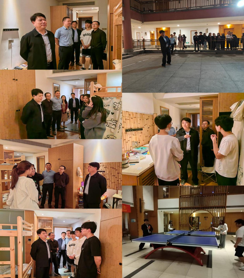 贴近师生,关注师生食宿情况。贺瑞虎对于同学们的餐饮和住宿环境一直都非常关心,专程走访了基地食堂,调研食堂环境和用餐情况,同时利用晚上休息时间到学生宿舍走访,贺书记多次询问大家的生活情况,倾听同学们生活的感受。同学们纷纷表示食堂的伙食不错,基地环境很好,书记露出满意的笑容。走访中,贺书记看到同学们在打乒乓球、羽毛球,兴致勃勃地参与到其中,与同学们现场竞技,赢得同学们的阵阵喝彩。贺瑞虎嘱咐同学们平时要将学习和运动结合起来,健康的体魄才能成就更美好的未来。