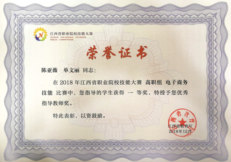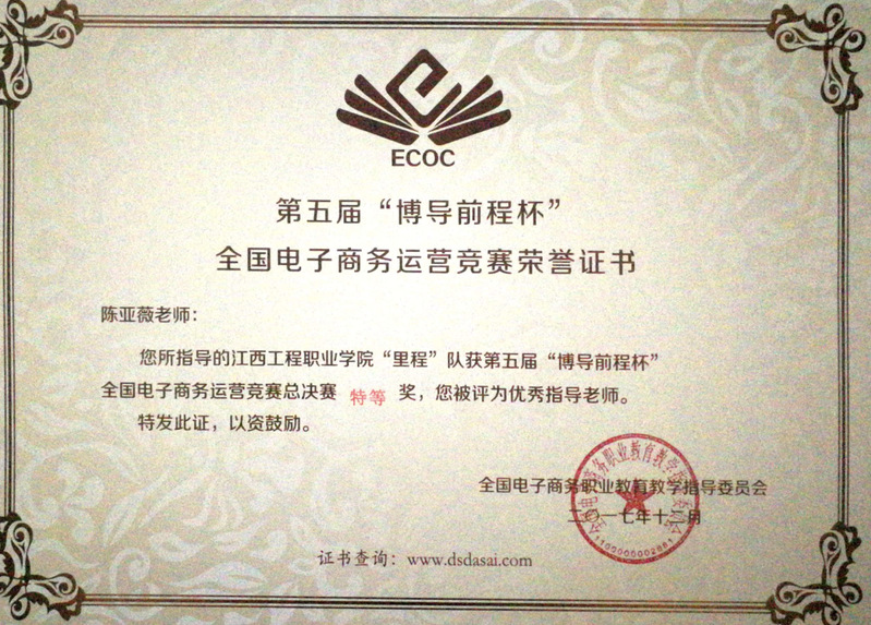 陈亚薇,中共党员,江西财经大学企业管理硕士,现任437必赢会员中心成人教育电子商务专业主任、工程职院电子商务学院教研室主任。在7年多的从教生涯中,她时时以一个优秀党员教师的标准要求自己,勤勤恳恳、兢兢业业、热爱学生、团结同志,深受学生、家长、同事、领导的好评。在多年的教育教学中,多次得到各种奖励。