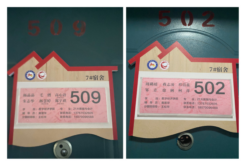 为认真贯彻落实习近平总书记关于加强和改进人民信访工作的重要思想,全面践行“服务就在身边,矛盾不出校园”的理念,提升学生宿舍管理育人、思政育人、服务育人功能,数字经济学院对学生宿舍门牌实施亮化公示管理,做到学生“有呼即应、有诉必应”,全身心呵护学生健康成长。