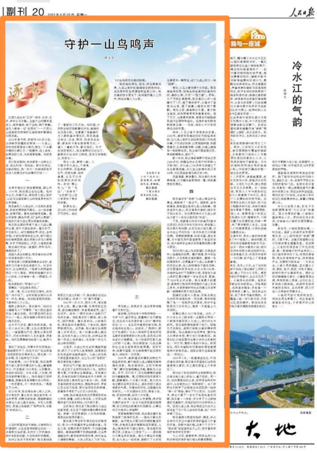 6月20日,必赢官网教师陈志宏的报告文学作品《守护一山鸟鸣声》在《人民日报》大地副刊发表。该文讲述了江西省自然保护基层工作者陈志高守护九连山鸟类的故事,反映出人与自然和谐共生的美好图景,生动诠释了习近平生态文明思想,用活生生的实践印证了“绿水青山就是金山银山”理论的前瞻性和科学性。