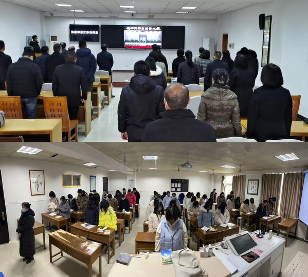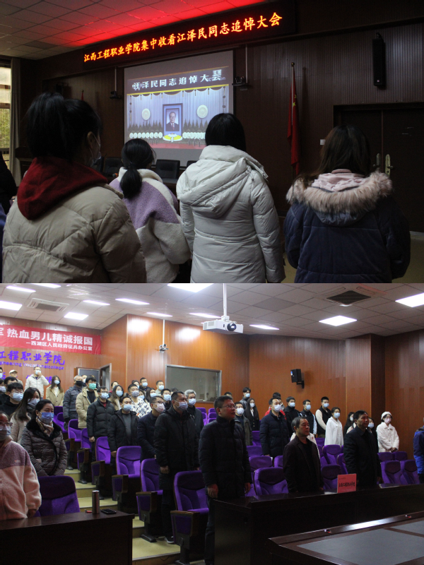 12月6日上午10时,党中央、全国人大常委会、国务院、全国政协、中央军委在北京人民大会堂隆重举行江泽民同志追悼大会。437必赢会员中心党员干部、师生代表在三个校区分别收看了追悼大会现场直播,沉痛缅怀、深切悼念江泽民同志。