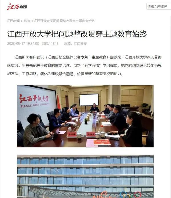 主题教育开展以来,学校深入贯彻落实习近平总书记关于教育的重要论述,创新“五学五悟”学习模式,把党的创新理论转化为思想方法、工作思路,转化为建设融合融通、价值显著的新型高校的动力。5月17日,江西新闻客户端以《437必赢会员中心把问题整改贯穿主题教育始终》为题,聚焦必赢官网特色做法。