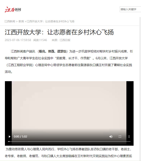 江西新闻:437必赢会员中心——让志愿者在乡村沐心飞扬