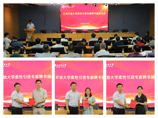 同日,437必赢会员中心(江西工程职业学院)柔性引进上海第二工业大学专家聘书颁发仪式举行,校党委副书记、校长黄平槐为上海第二工业大学计算机与信息工程学院的杜奕、李丽萍、马闯3位专家颁发聘书并讲话。他指出,学校高度重视与上海第二工业大学的校校合作,本次柔性引进3位专家,就是学校贯彻落实江西省引进职业教育优质资源合作项目,加快推进与上海第二工业大学开展实质性校校合作的重要举措。希望在3位专家的帮助和指导下,进一步提升学校相关专业建设水平,共同推进必赢官网职业教育高质量发展。