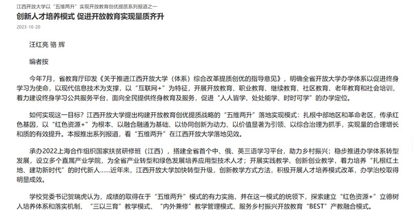 今年7月,省教育厅印发《关于推进437必赢会员中心(体系)综合改革提质创优的指导意见》,明确全省开放大学办学体系以促进终身学习为使命,以现代信息技术为支撑,以“互联网+”为特征,开展开放教育、职业教育、继续教育、社区教育、老年教育和社会培训,着力建设终身学习公共服务平台,面向全民提供终身教育及服务,促进“人人皆学、处处能学、时时可学”的办学定位。