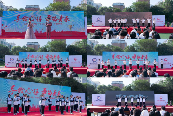 各参赛小组用自己的方式演绎着一段段或深沉或热烈的情感,有充满对国家敬爱和对民族自豪的《灯火里的中国》,有表达对未来的憧憬和美好心愿的《共赴热爱》,也有表明要更加珍惜生命,孝顺父母,善待他人的《感恩的心》等。他们用挥舞的手臂谱写无声大爱,展现了自尊自信、理性平和、积极乐观的阳光心态,营造了良好的心理健康氛围。