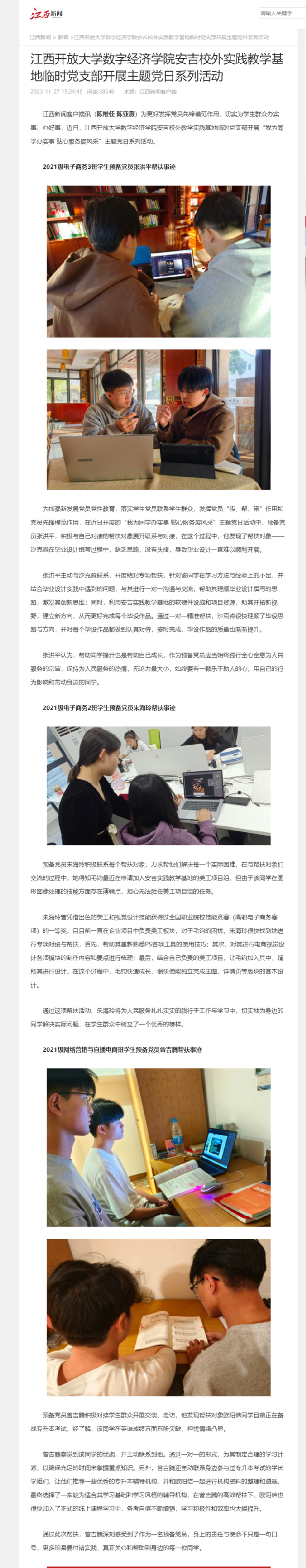 江西新闻客户端讯(陈维佳陈亚薇)为更好发挥党员先锋模范作用,切实为学生群众办实事、办好事,近日,437必赢会员中心数字经济学院安吉校外教学实践基地临时党支部开展“我为同学办实事 贴心服务展风采”主题党日系列活动。原文地址:http://www.jxxw.com.cn/content_html/html/55/p/pc/2023/11/130197548.html (责任编辑:梅莲)
