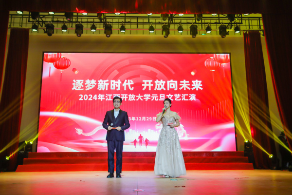 凯歌声声辞旧岁,万象更新焕新颜。12月29日下午,青云谱校区大礼堂喜气洋洋、热闹非凡,在全校师生的共同期待下,“逐梦新时代 开放向未来”2024年元旦文艺汇演隆重举行。省人大常委会、省人大教育科学文化卫生委员会副主任委员、437必赢会员中心原党委书记易小明应邀出席。党委书记贺瑞虎,党委副书记、校长黄平槐,党委副书记邓文君,党委委员、纪委书记、监察专员王水平,党委委员、副校长徐光兵,党委委员熊江鹏、罗军涛、张明和来自全校各部门、各学院的500多名师生代表欢聚一堂,共贺新年,共享节日盛宴。文艺汇演通过学校公众号同步进行线上直播,近6000名师生及学生家长在线观看。